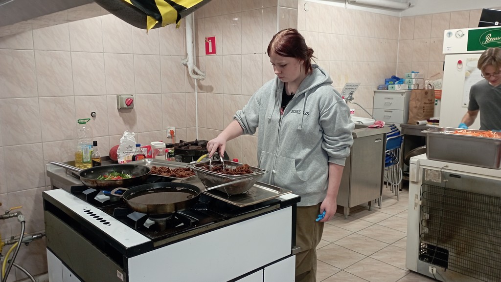 W sobotę, 11.11.2023 r., wychowanki naszego Ośrodka razem z „Zupą na Pietrynie” przygotowały posiłek w stylu kuchni azjatyckiej dla osób w kryzysie bezdomności. Dla wolontariuszy w ramach poczęstunku zrobiły natomiast deser tiramisu.