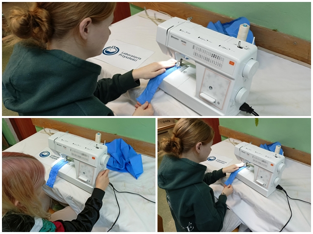 W ramach zajęć praktycznych dziewczęta uczyły się obsługi maszyny wieloczynnościowej. W wyniku czego powstaną serwetki świąteczne ozdobnie wykończone.