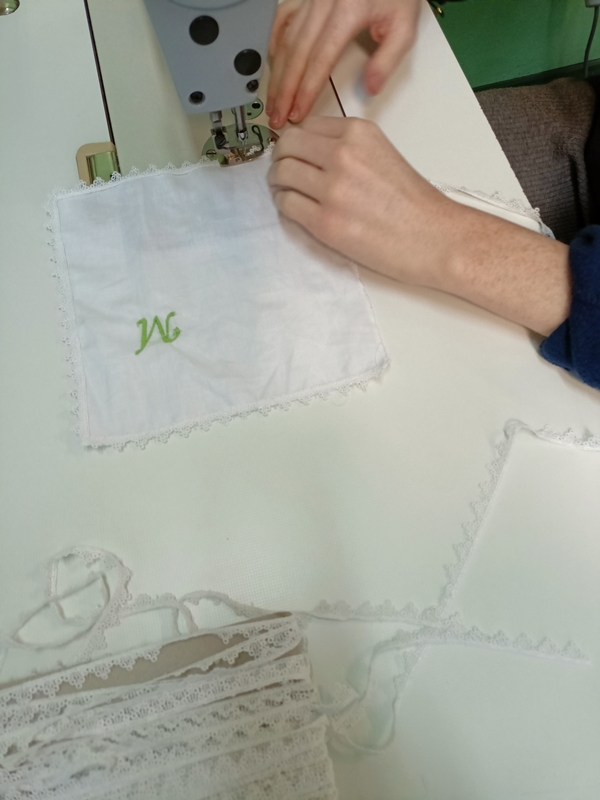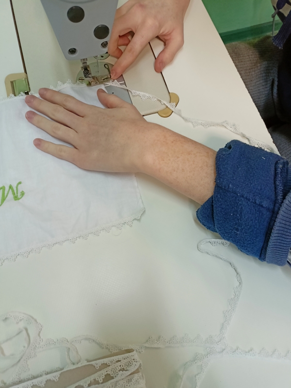 Podczas lekcji krawiectwa klasa IIIbr wykorzystywała hafciarkę. Tym razem powstawały prezenty dla babć i dziadków z okazji nadchodzącego święta. Dziewczyny szyły chusteczki ozdabiane haftem.
